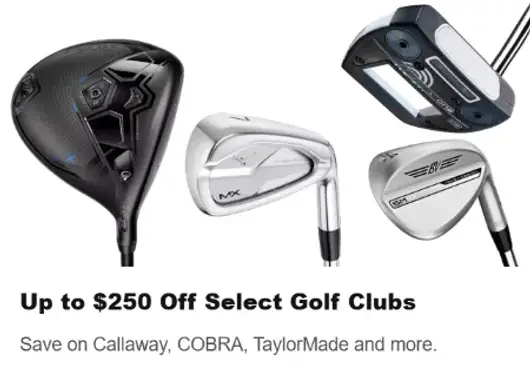 Don't miss out! Shop in store and get up to $250 off select golf clubs.